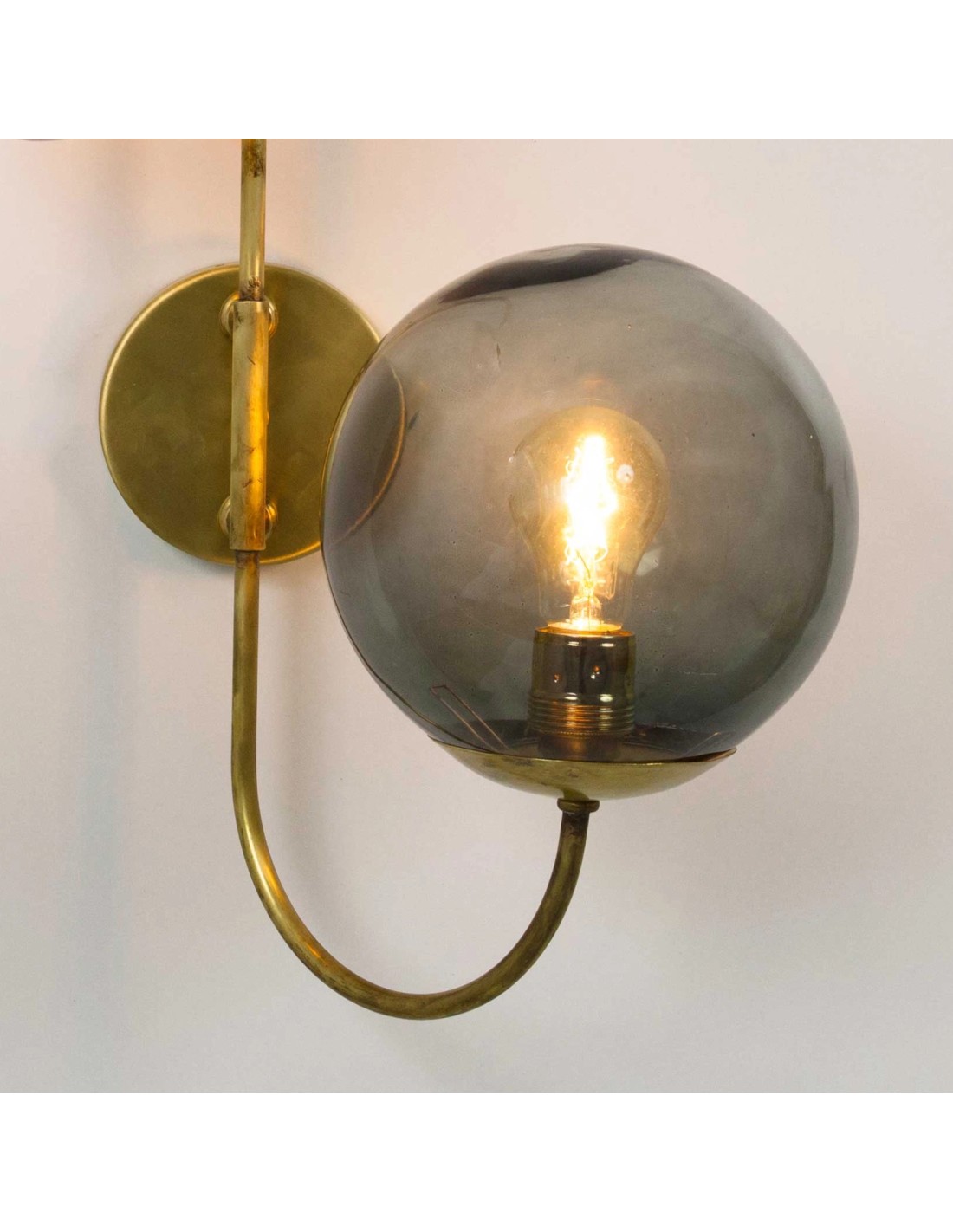 El aplique de pared Amina de Luz Vintage es una lámpara de interior fabricada en España con un diseño elegante y atemporal. Combina dos esferas de cristal en distintos tamaños y acabados, junto con una estructura metálica artesanal, creando un estilo vintage de alta decoración ideal tanto para hogares como para proyectos de interiorismo profesional.