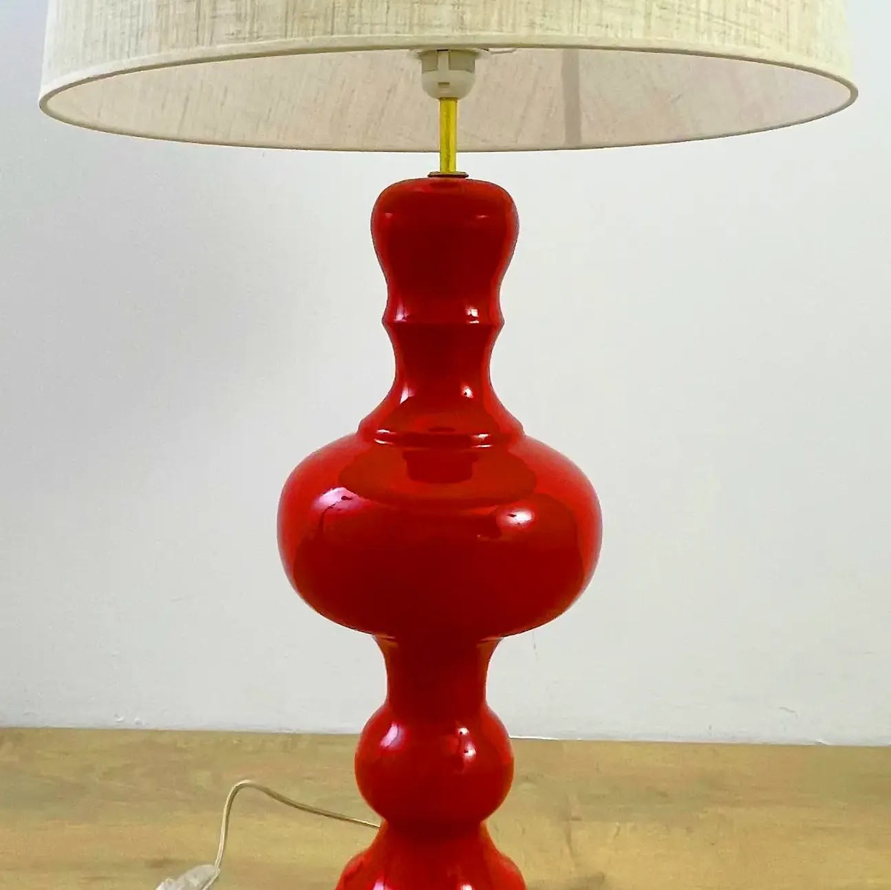 Acabado Base en blanco roto o rojo (a elegir) y pantalla de tela lino