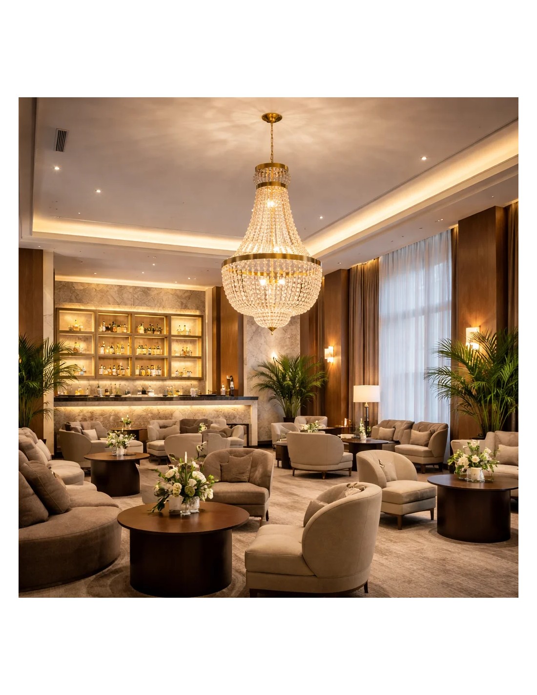 - Hoteles boutique y salones de banquetes, con atmósferas cálidas y majestuosas.