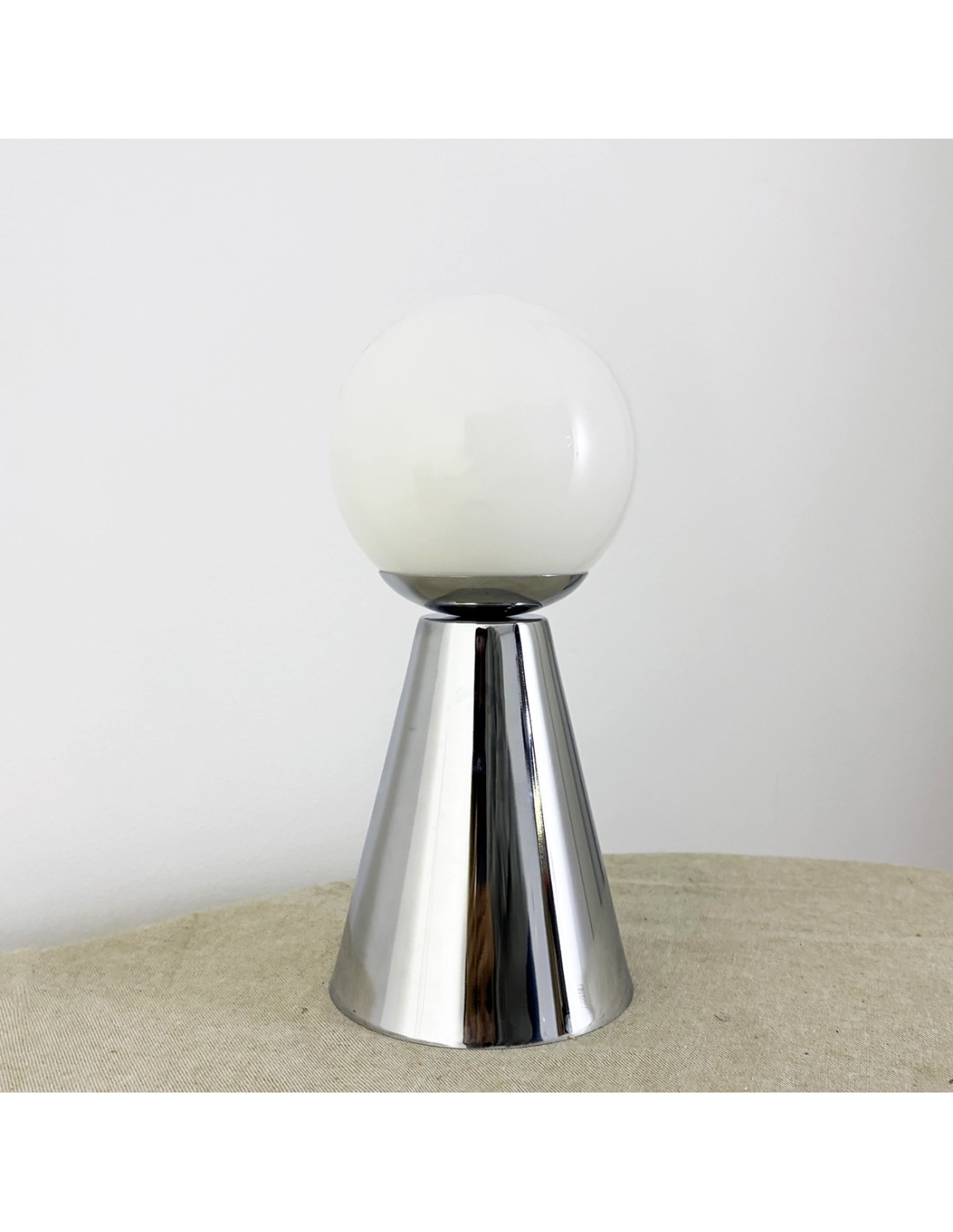 La lámpara de sobremesa Uliana destaca por su diseño geométrico elegante y atemporal. Con una base cónica de metal disponible en dos acabados —latón envejecido y cromo cepillado— y un globo esférico de cristal opalizado, esta pieza combina estética minimalista con sofisticación. Su altura de 26 cm la hace ideal para superficies pequeñas, mientras que su estructura robusta y materiales de alta calidad garantizan durabilidad y presencia visual.