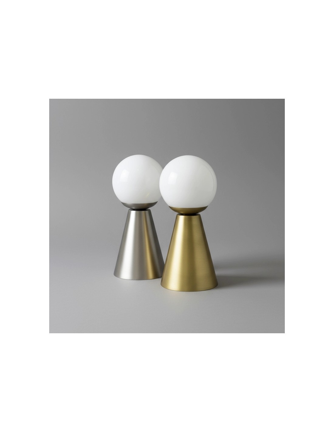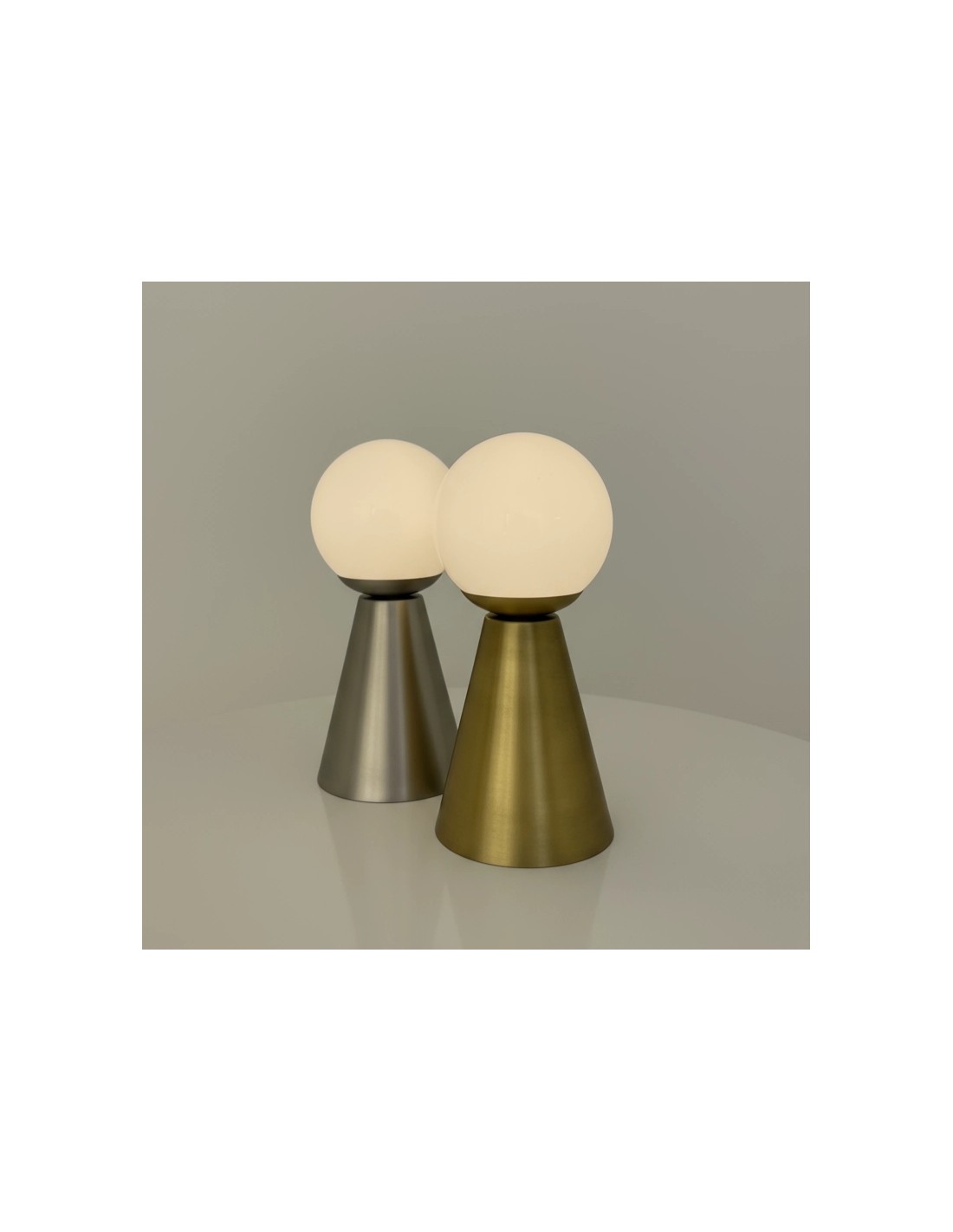La lámpara de sobremesa Uliana destaca por su diseño geométrico elegante y atemporal. Con una base cónica de metal disponible en dos acabados —latón envejecido y cromo cepillado— y un globo esférico de cristal opalizado, esta pieza combina estética minimalista con sofisticación. Su altura de 26 cm la hace ideal para superficies pequeñas, mientras que su estructura robusta y materiales de alta calidad garantizan durabilidad y presencia visual.