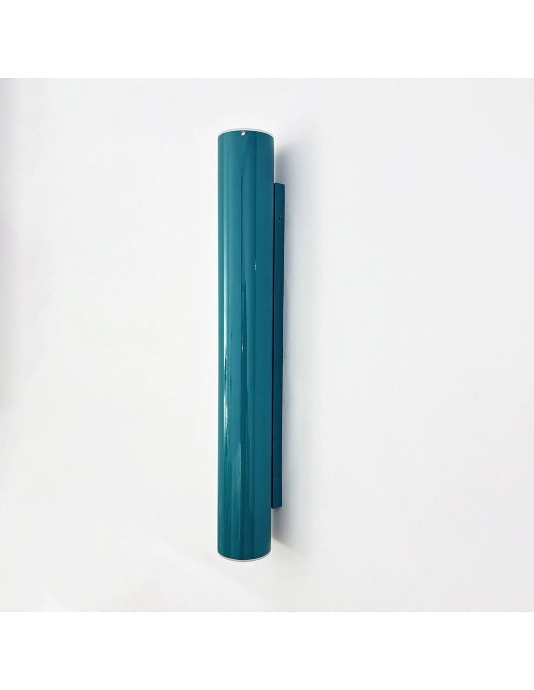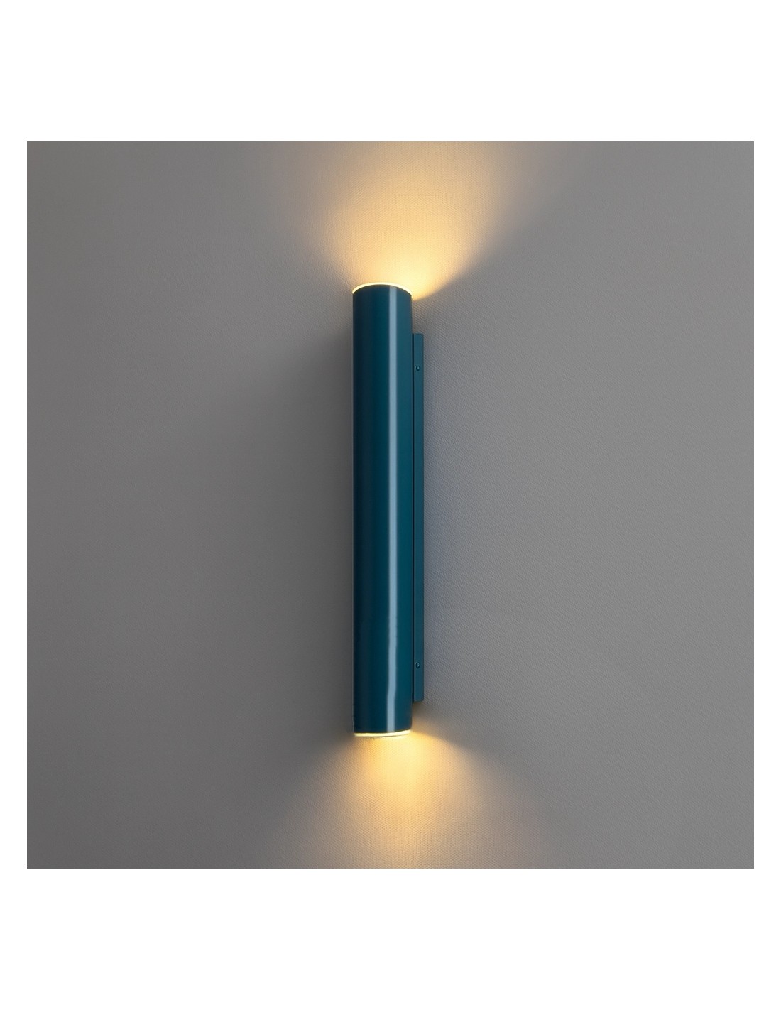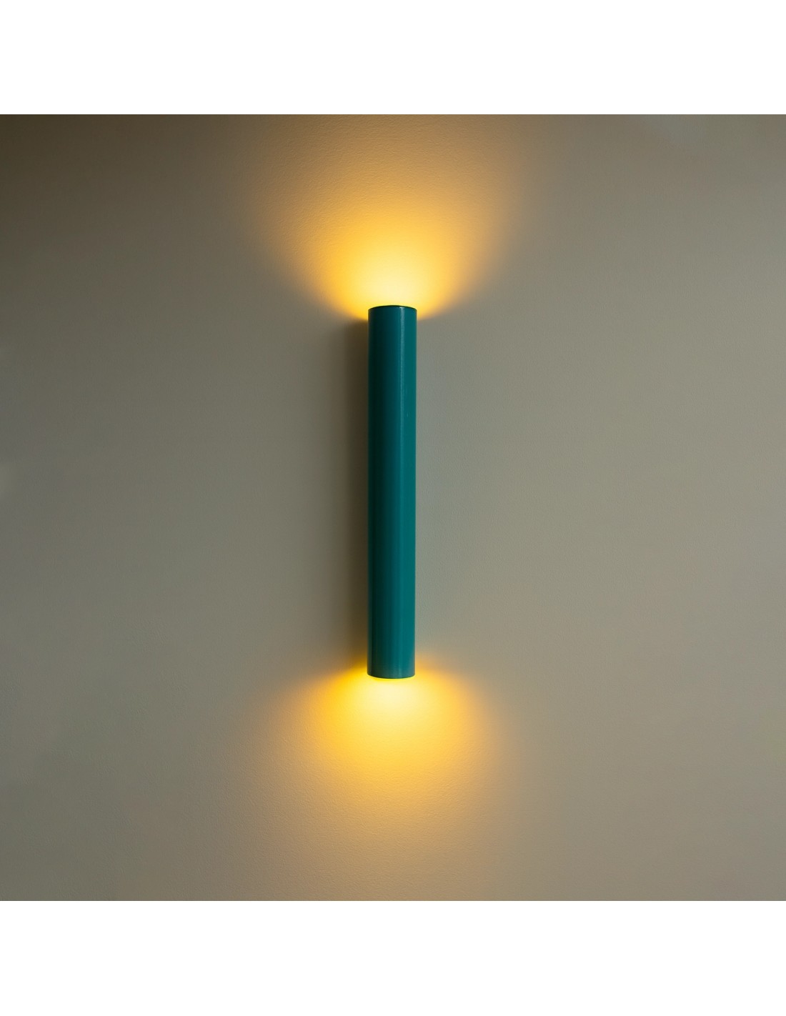 El Aplique Shani es una luminaria de diseño moderno y estilizado, perfecta para interiores contemporáneos que buscan un toque de color, personalidad y luz ambiental elegante. Fabricado artesanalmente en metal lacado en azul turquesa, este aplique destaca por su forma tubular minimalista y su iluminación doble (arriba y abajo) con difusor de metacrilato, capaz de crear efectos de luz cálidos, envolventes y muy decorativos.