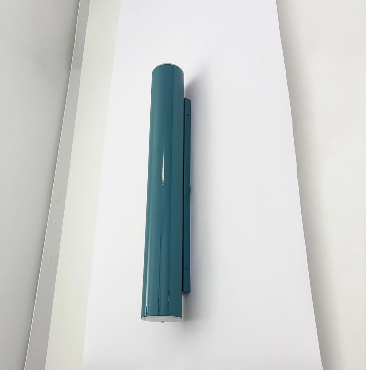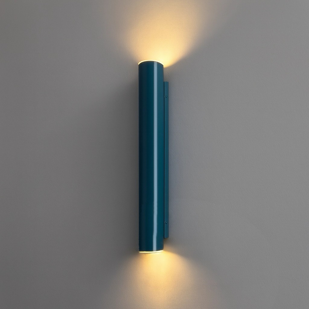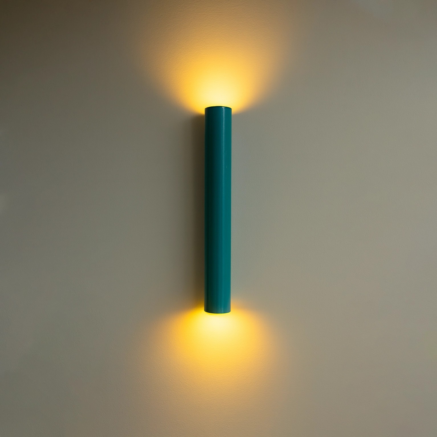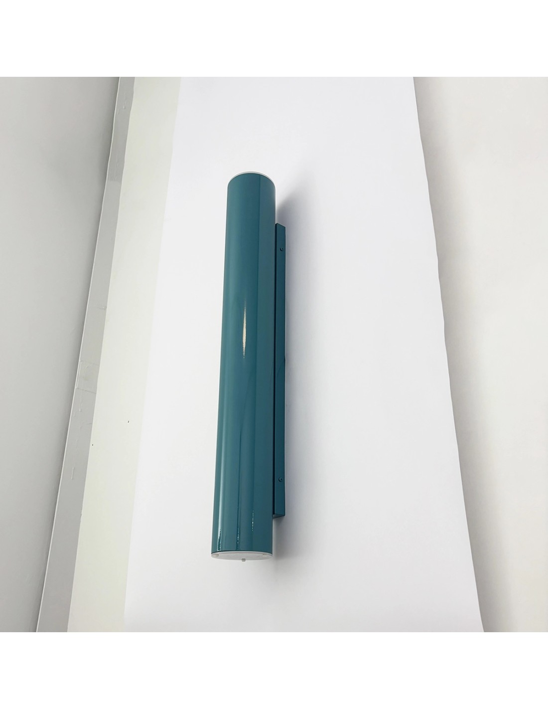 El Aplique Shani es una luminaria de diseño moderno y estilizado, perfecta para interiores contemporáneos que buscan un toque de color, personalidad y luz ambiental elegante. Fabricado artesanalmente en metal lacado en azul turquesa, este aplique destaca por su forma tubular minimalista y su iluminación doble (arriba y abajo) con difusor de metacrilato, capaz de crear efectos de luz cálidos, envolventes y muy decorativos.