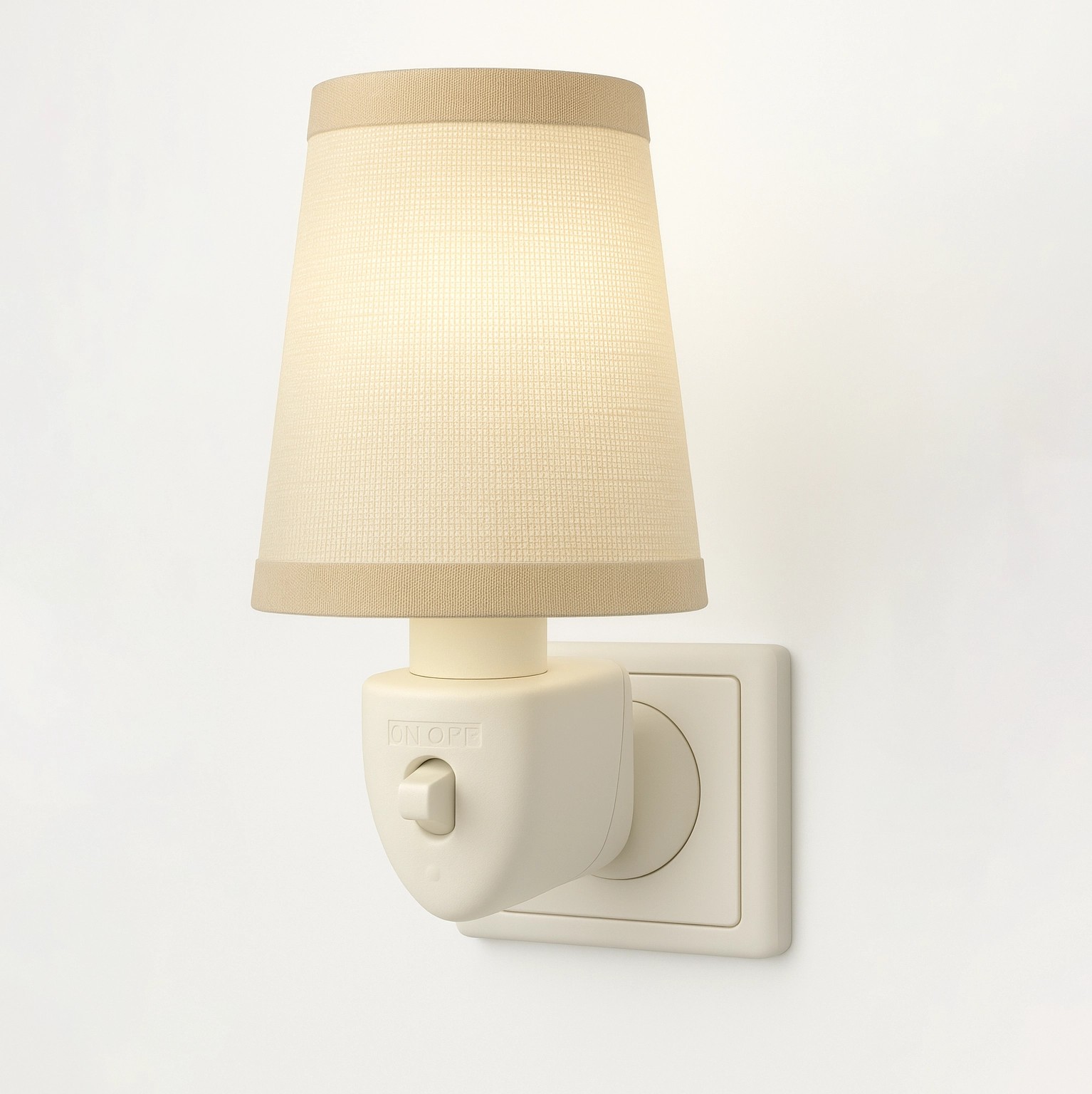 Punto de luz para enchufe con pantalla de lino blanco – Luz nocturna vintage y elegante