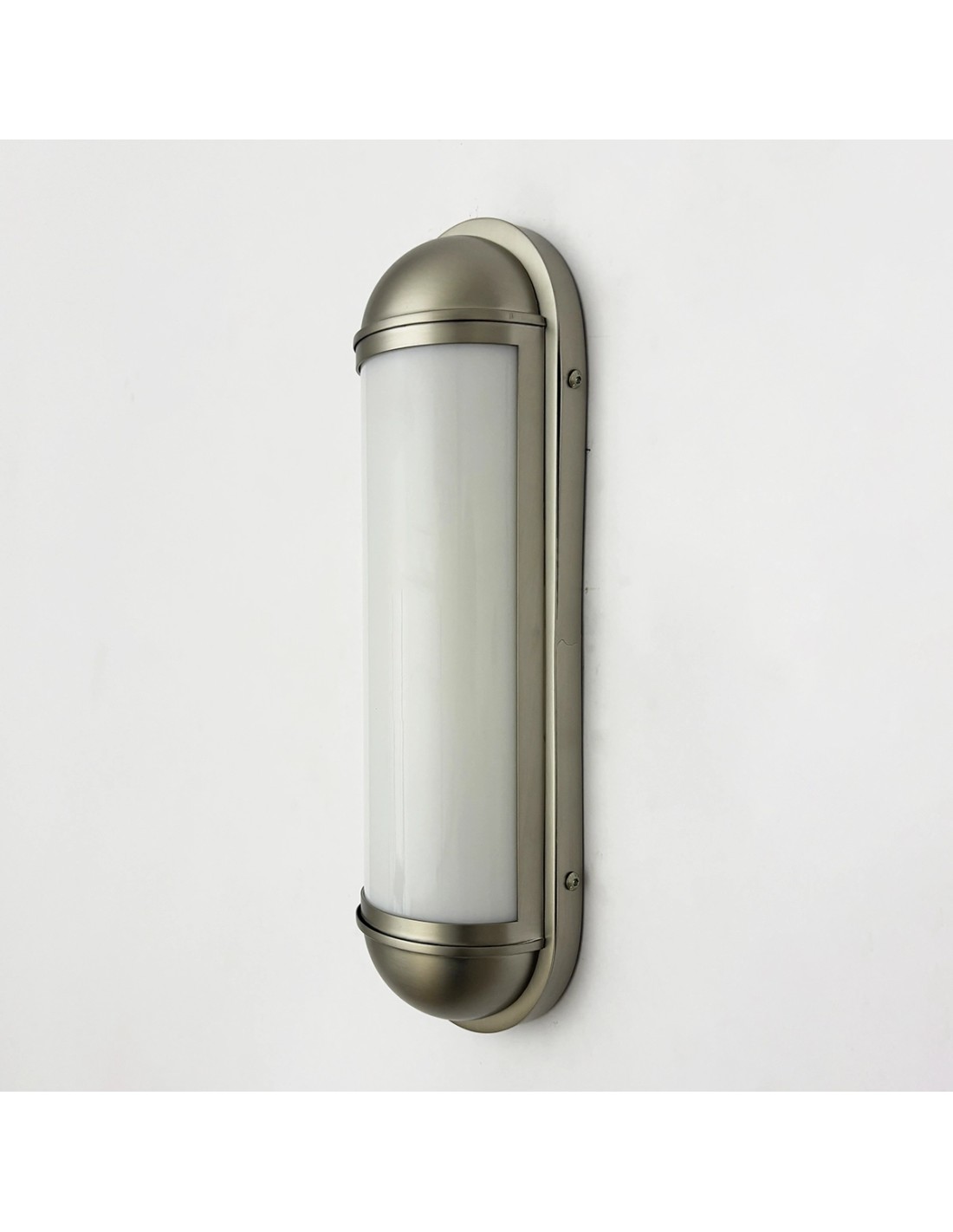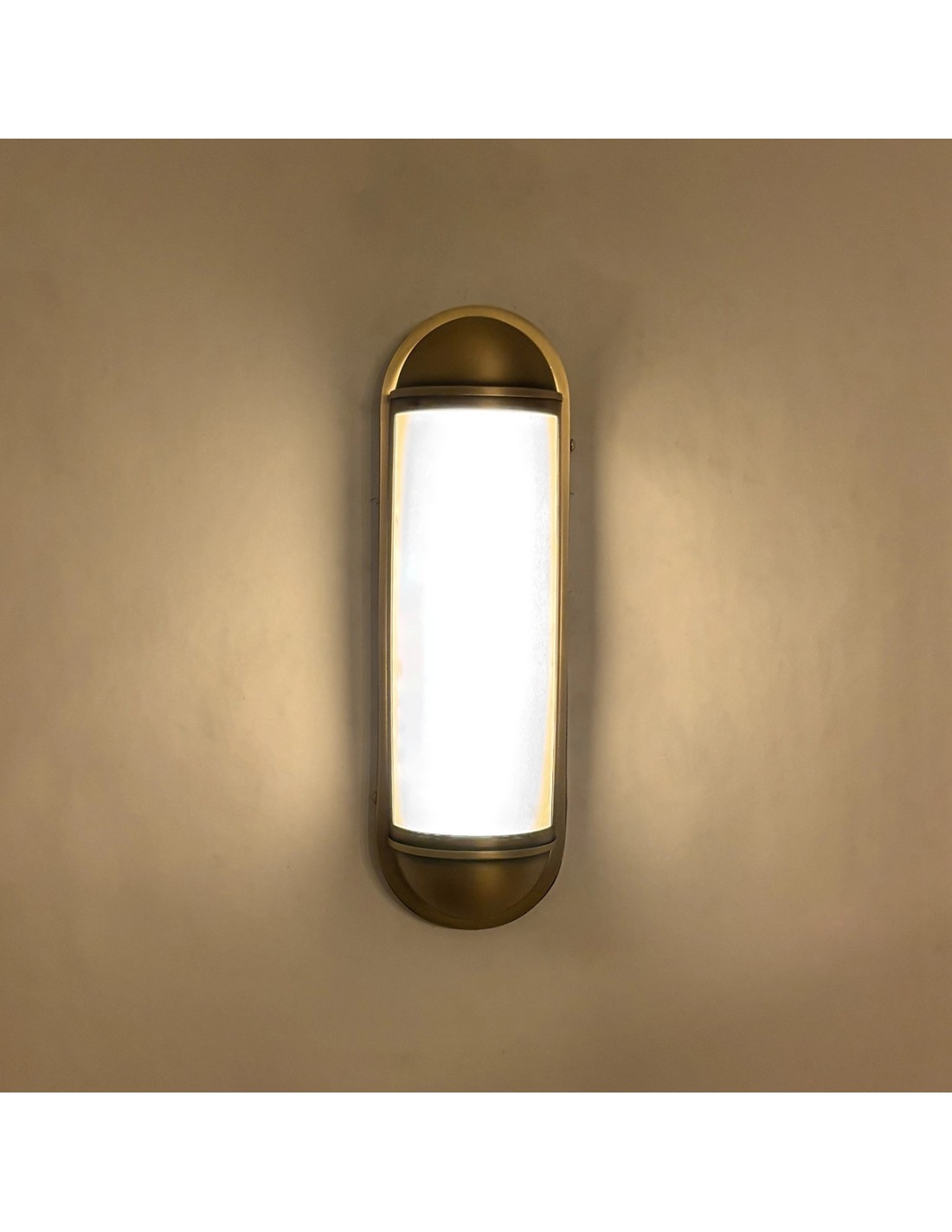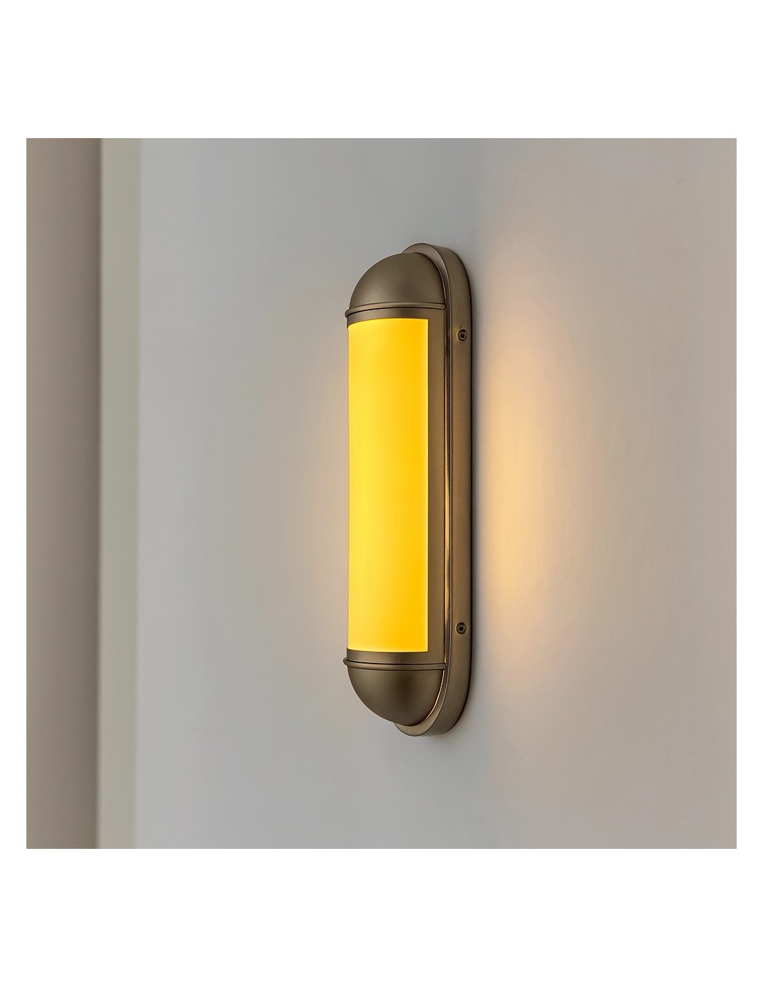 Su formato alargado aporta verticalidad visual a la pared y lo convierte en una pieza muy decorativa incluso cuando está apagado.