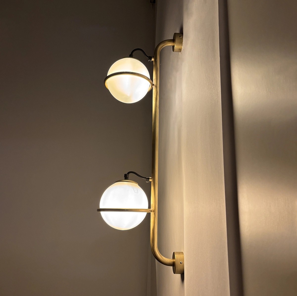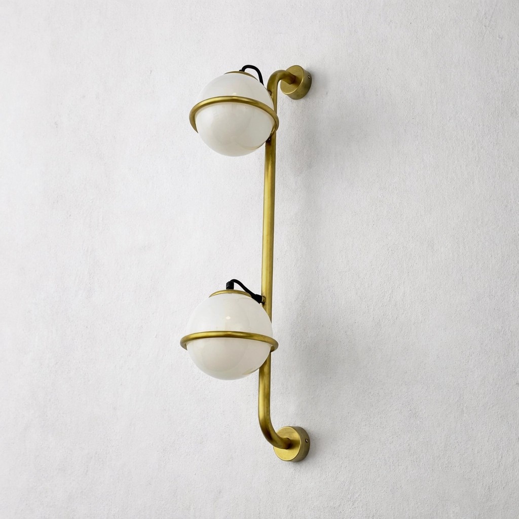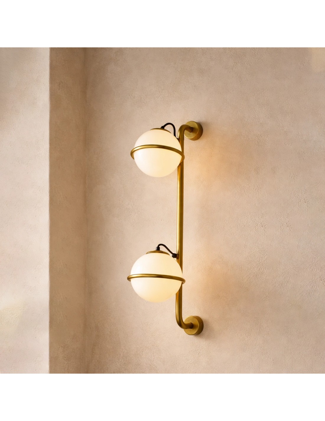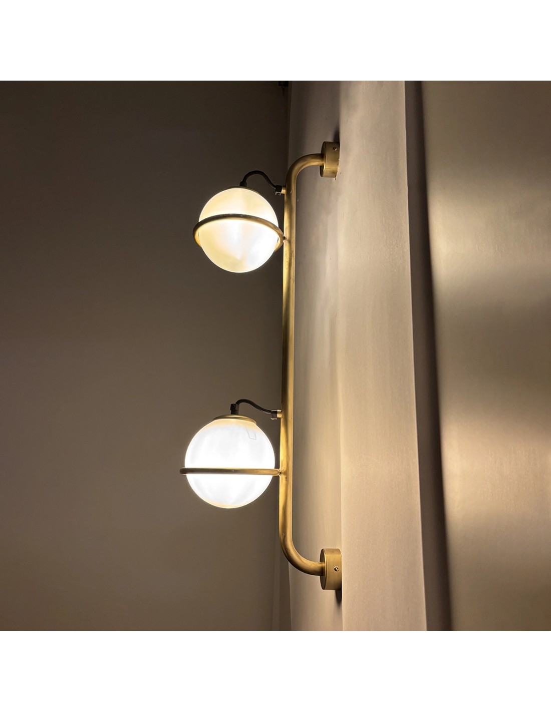 Aplique de pared en latón con doble globo de cristal opal - Modelo Valkiria