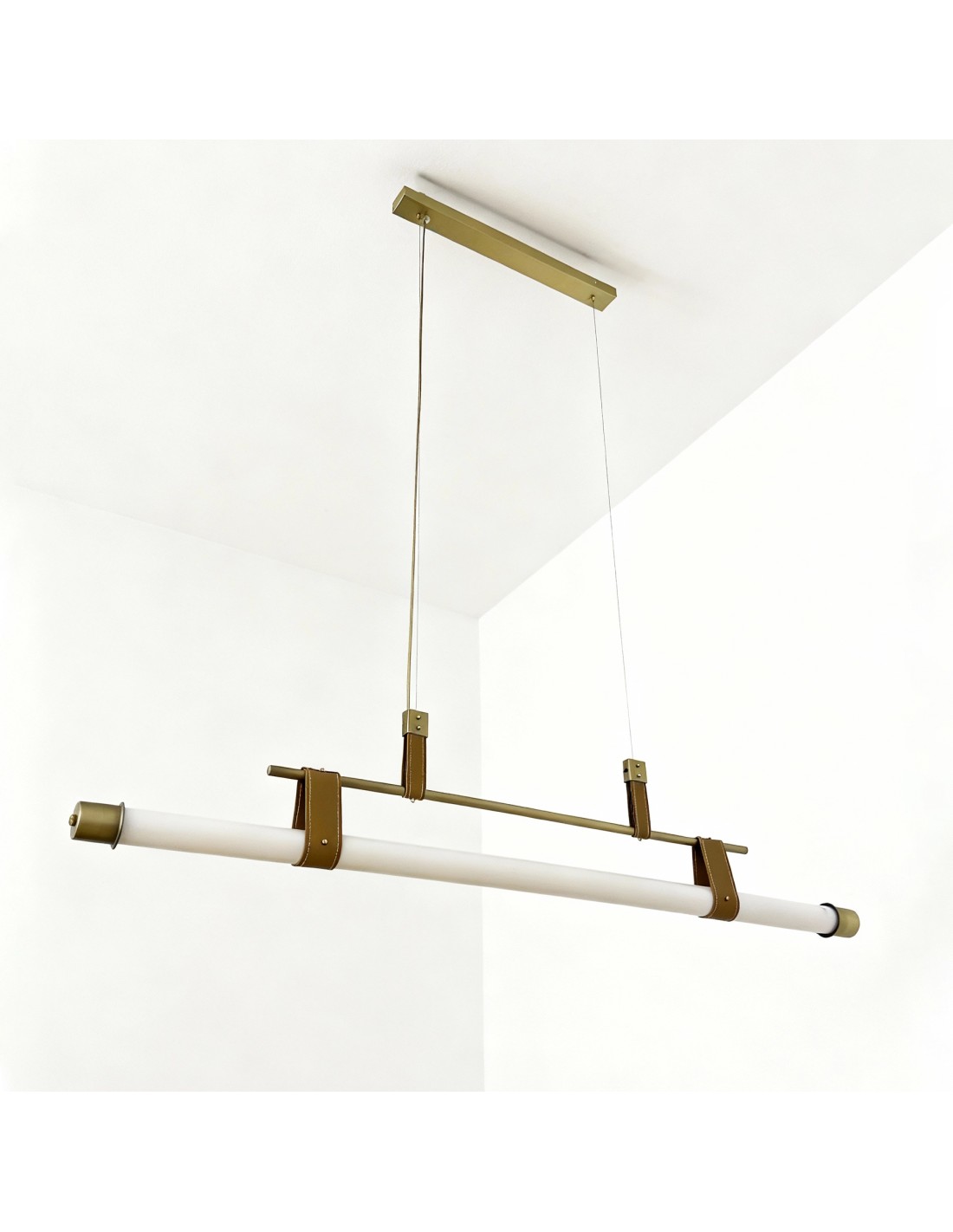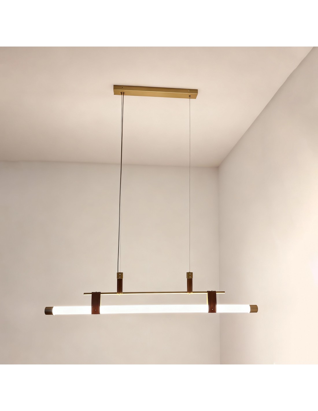 Unai linear LED pendant lamp with leather details | Luz Vintage