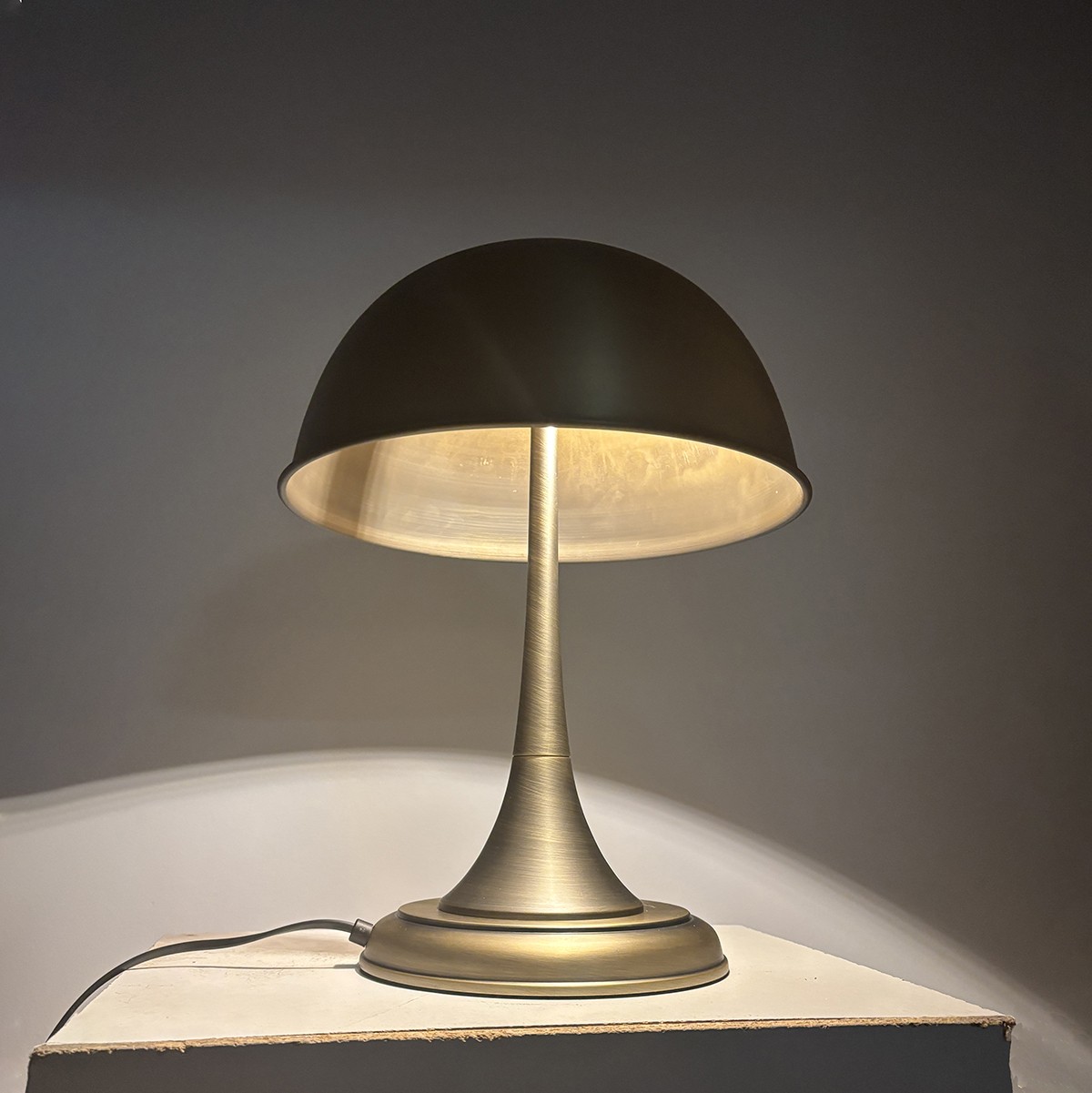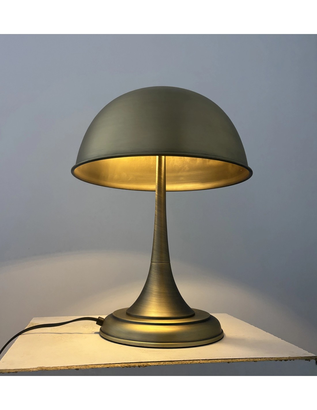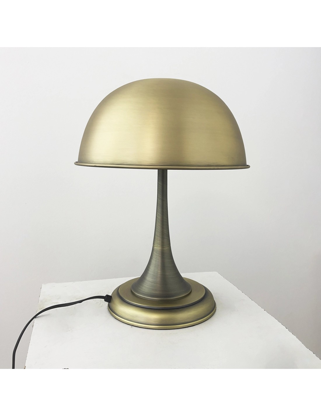 The Tala table lamp is an elegant and sophisticated piece, designed to bring warmth and style to any space. Made of metal with an aged brass finish, it combines a 25 cm semi-spherical dome with a stylish base with soft lines, creating a balanced and timeless light fixture. Its golden interior enhances the warm light, generating enveloping and extremely decorative ambient lighting.