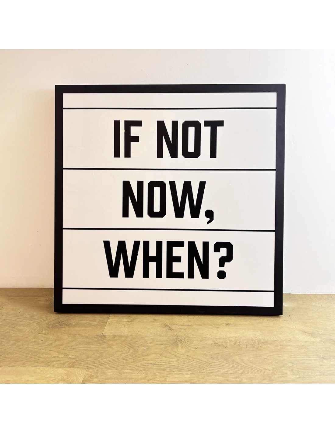 The Quote LED light sign is a decorative and functional piece designed to stand out in any commercial space. Made of textured black lacquered metal and vinyl-coated methacrylate, this large-format sign (110x110 cm) incorporates warm 3000K LED lighting, creating a modern, elegant and highly visible visual effect.